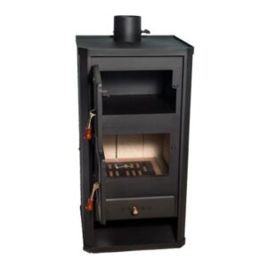 Elektrische Leistung (W): 12 kW Beheiztes Volumen: ~70 m² (Oberfläche) Brennstoff: Holz Sicherheit: Hitzebeständiges Keramikglasfenster, das Sicherheit und Sicht auf das Feuer bietet.